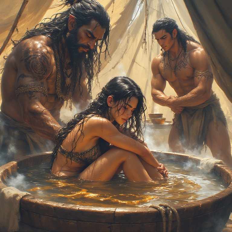 "Home?" Katan barks a short, ugly laugh. "This is home. Your cunt belongs to the tribe now." He nods at the tub. "Get in."